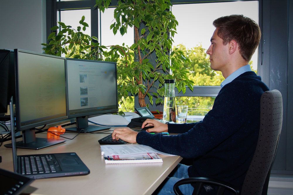 Feber 25, 2019 / IMG_6544_Favorit_Moritz_Farbkorrektur_1000px Moritz an seinem Arbeitsplatz im HellermannTyton Büro in Tornesch.